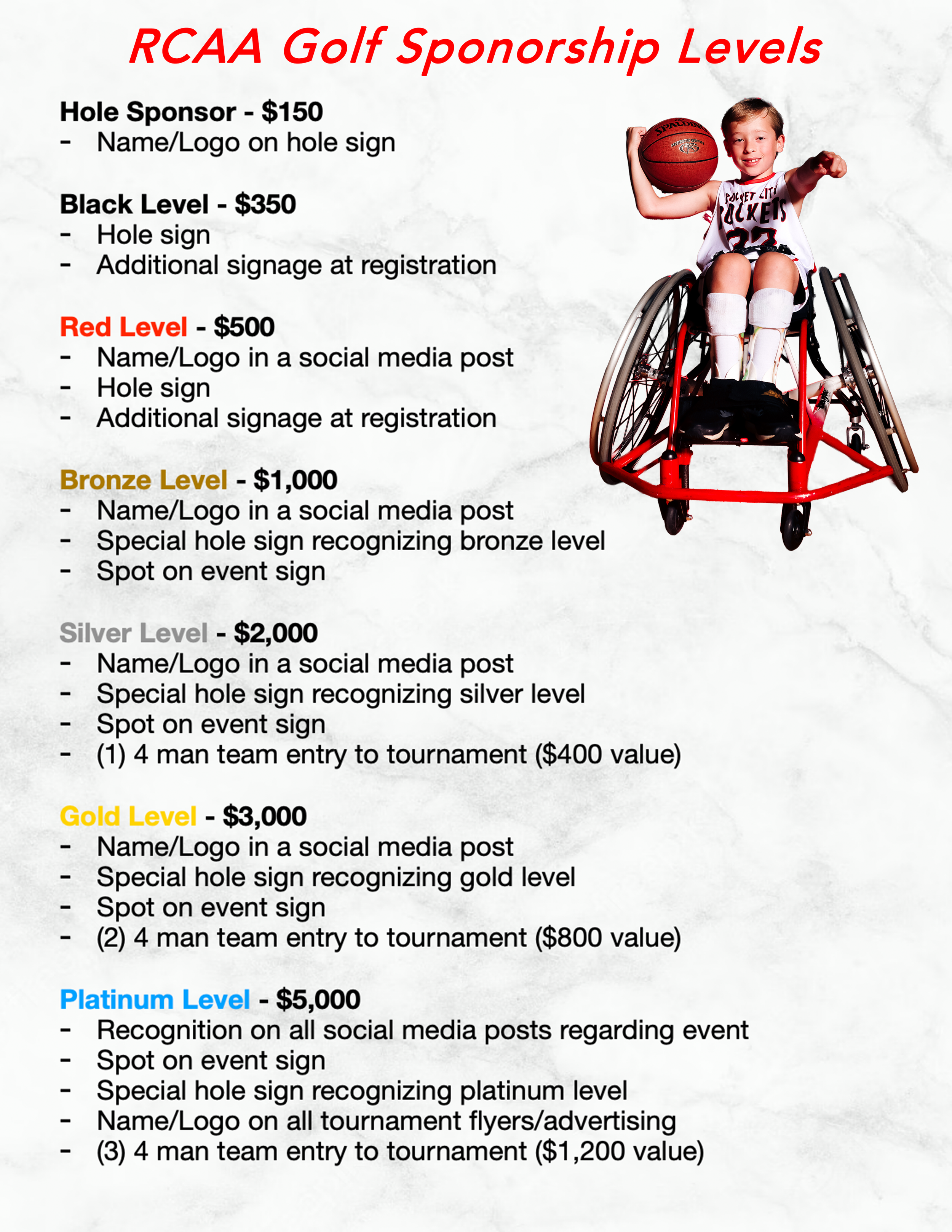 Only with the support of our community can we accomplish our mission of providing wheelchair basketball for youth with physical disabilities in North Alabama. If you or your business would like to be a sponsor, be sure to fill out printable sponsorship form above. Your support is greatly appreciated!